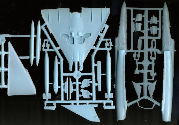 h Planes standard light blue low pressure moldings with rather intrusive sprue attachment points that will need care in removing and cleaning up. Injection plastic provides the base airframe and fuel tanks. Resin is used for the intakes, interior, nose gear well, exhaust and wheels. Cast metal is used for the landing gear, struts and some small interior bits. Two nicely done vacuformed canopies are also included.