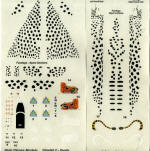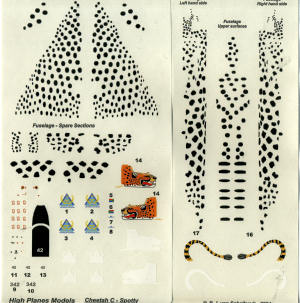 When opening up the box, the first thing one sees is a very large set of decals. 'Spotty' is the 75th Anniversary special scheme plane for the SAAF and was painted up for the air show circuit in 1995. Since these are the first things one sees, I should cover them by saying that the markings are very nicely printed under a continuous carrier. They will need to be cut out and High Planes offers white sections for the darker decals to prevent see-through. Apparently they are very thin and cannot take much handling. The instructions provide a full color placement guide.