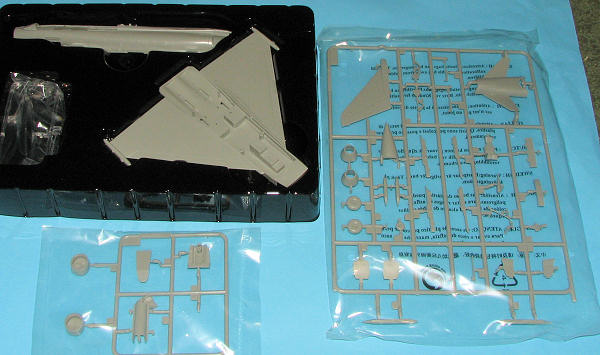 Opening the box I was surprised to see this kit engineered like their inexpensive $10 kit line. There was a full wing and lower fuselage with a complete upper fuselage and one-piece canopy in the usual black container one finds with their low-buck line. Equally odd as it is priced at the lower echelon of their 'normal' kits in the $25.00 MSRP range.