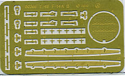 engines, optional position multi-part canopy, refueling probe, optional deployed boarding steps, separate speed brakes, very nicely detailed wheel wells and landing gear, vinyl tires and a nice photo etch fret for the radar array, seat harnesses and the canopy rails. The interior instrument panels and consoles have nicely done raised detail and decals that one can use if that is the desire.