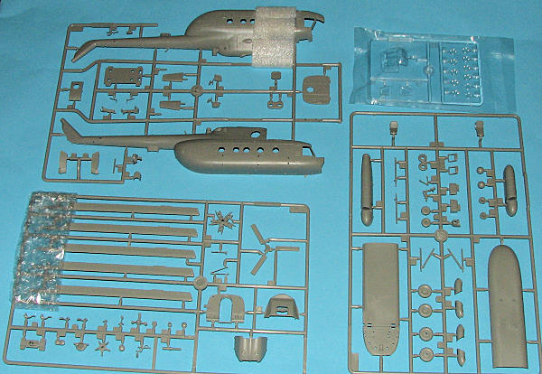 Anyway, the kit has a fairly nicely detailed cockpit and includes both flight controls as well as a nicely done pair of instrument panels. There are dial faces only on the panels and the seats are without belts, again, standard 1/72 stuff for most. The cabin area is devoid of any detail, but there are aftermarket items for this kit that will provide that if you want it. Other items on the kit are a rescue winch, lower cockpit armor plating and a radome. There are also cabin stairs and one can pose the door to the cabin open