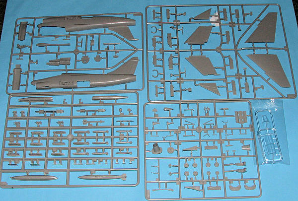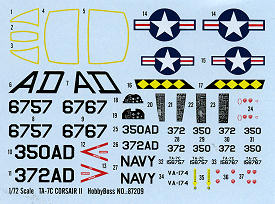 The subject of this kit is the two-seat trainer version for U.S. Navy, 24 converted from A-7B, 36 from A-7C. These were farmed out to the two A-7 training units, VA-122 for the west coast squadrons and VA-174 for east coast operators. In 1984, 49 airframes, including the 8 EA-7Ls, were re-engined with the TF41-A-402 and upgraded to A-7E standard.