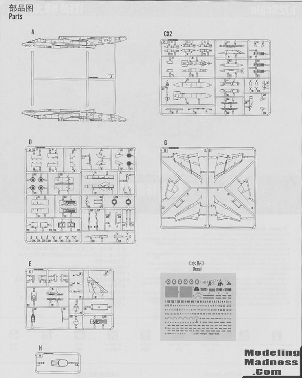 This isn't the first kit of the Jaguar in this scale with both Heller/Airfix and Hasegawa producing kits of the type in the past. However, this is the first new tooling in decades of this kit with Hobby Boss apparently starting with the French versions. This is the Jaguar A with an E kit also being produced. The sprues layout is such that the fuselage halves are on a separate sprue so no need to graft a nose section onto an extant fuselage.