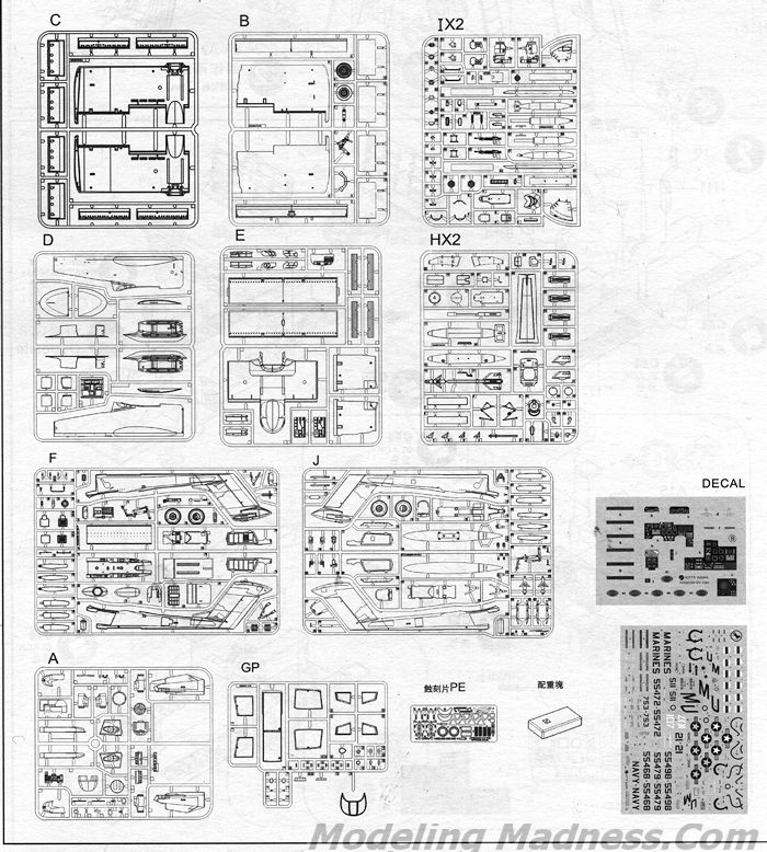 Instructions are the usual, well drawn, booklet that consists of 26 construction steps plus several steps for the ordnance and a load out diagram. A full color painting and markings guide is provided for six aircraft. The box art plane is from VMO-5 in Marine Green over Light Gull Grey with a white upper wing. The other USMC plane is from VMO-2 and in the same scheme. Two USAF planes are included. The initial offering is an overall ADC Grey or Light Gull Grey plane from the 549 TASG. The instructions state it is