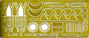The kit comes with a nicely done etched fret which is mostly for intakes, wing spoilers, seat harnesses and a few other smaller bits. A very nice addition is a rectangular weight that fits under