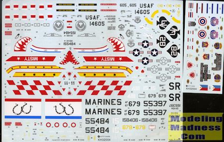 white and that is not correct. The other is in the later Euro I scheme and with the 20th TASS at Shaw AFB. For the foreign contingent we have a Thai Air Force OV-10C in SEA camouflage and finally a Philippine AF plane in a rather unique scheme of green/grey/brown over light grey. This aircraft has low visibility markings and a large shark mouth. The large decal sheet is nicely printed, though the red looks a bit too bright to my eyes. Those not wanting to use kit markings already have several options from the aftermarket folks.