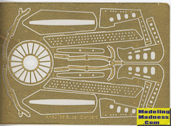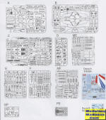 The cockpit has a nine piece bang seat on which one then places the p.e. harness. THe various side consoles are separate pieces to fit into the side panels and you ahve a two piece control stick and two rudder pedals. There are decals for the instruments should you so wish to use those.