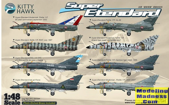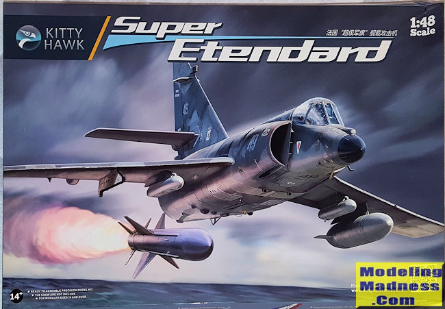 Though Kitty Hawk is not the first to do a Super Etendard in this scale (that goes to Heller a few decades back), this one is without a doubt the most detailed kit yet done of this aircraft. The box of grey plastic sprues is literally packed with bits as Kitty Hawk has provided us with more weapons than we shake a stick at. Also included is a superb set of markings and a useful photo etch fret.