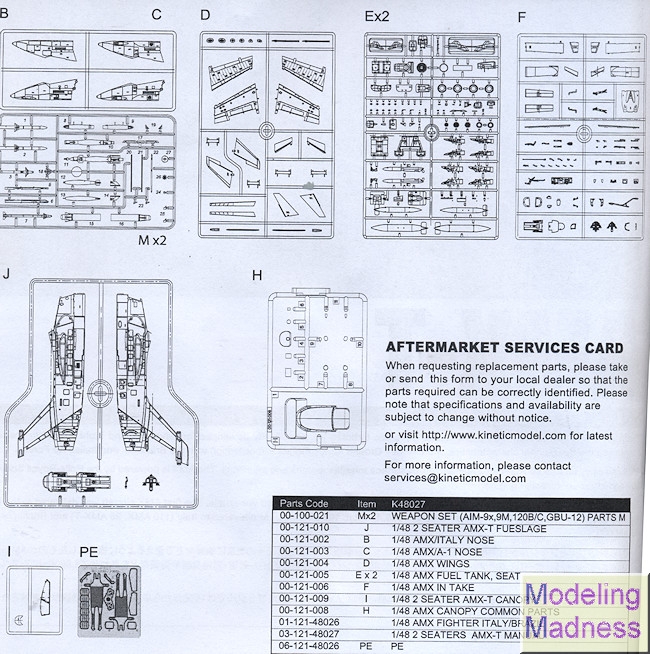 Kinetic provides a lot of sprues with any of their kits and this one is no exception. Not surprisingly, most of the sprues are identical with the single seat version save for one sprue that includes new fuselage halves, cockpit interior and an instrument panel for the rear seat. A new clear sprue is provided. You'll have a lot of spare parts left over when you get finished with this one, mostly ordnance.