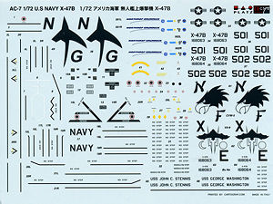 e options, all of them in overall FS 36270 Neutral Grey. Personally, I would lighten this up a bit as most Neutral Greys are quite dark. Anyway, the markings are for the two currently flying aircraft, AV-1 and AV-2 which are different primarily in serial numbers, though it seems that each has a different modex. The decals also come with three different air group markings for the wings (since the plane has no fin). It seems that the NG version was used on the first prototype. The decals are printed by Cartograf so are as good as any aftermarket sheets.