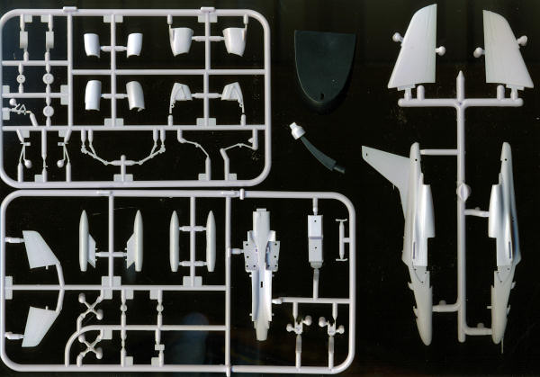 The kit is molded in white plastic and comes with a display stand, something that is rather rate for model kits. The engraved plastic is superbly done and very much up to modern standards. The cockpit is well appointed for this scale with two fairly well done ejection seats, control sticks and instrument panels (which are molded in clear plastic). Also in clear plastic are two single-piece canopies and the formation lights for the tail and wings. In fact, there are clear bits for two kits so I can anticipate a double kit being done sometime in the future.