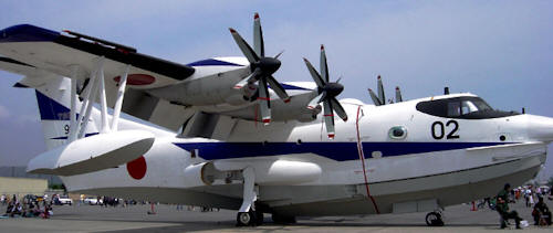 The PS-1 had not been in service long before the JMSDF requested the development of a search-and-rescue variant. The deletion of the PS-1's military equipment allowed for greater fuel capacity, workable landing gear, and rescue equipment. The new variant, the US-1A, could also quickly be converted for troop-carrying duties. First flown on October 15, 1974, it was accepted into service the following year, and eventually 19 aircraft were purchased. From the seventh aircraft on, an uprated version of the original engine was used, but all aircraft were eventually modified to this US-1A standard. The US-1A's first rescue was from a Greek vessel in 1976. Between that time and 1999, US-1As had been used in over 500 rescues, saving 550 lives.