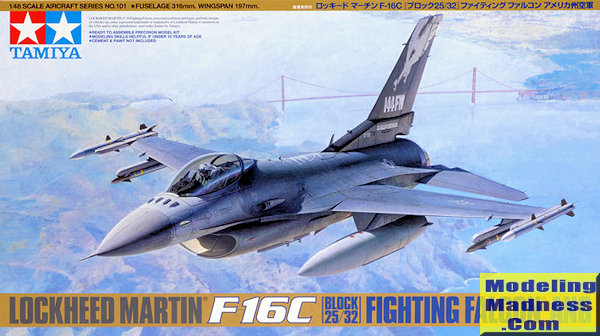 Tamiya's first F-16 was the F-16CJ that was widely embraced by modelers as being the best so far. True to Tamiya's usual excellence in engineering, it proved to be a very popular kit, despite its rather high price tag. Indeed, this one retails in the $66 dollar range, making it quite pricey unless one does some shopping.
