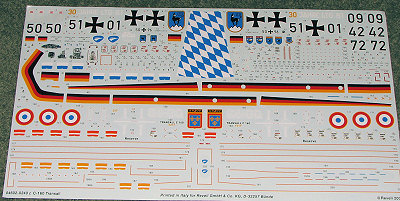 The last aircraft is from LTG 63 and depicts an aircraft participating in the Volant Rodeo competition held in the US in 1982. I don't have a photo of this one in the old scheme so did not include it. The decals themselves are printed in Italy and should work quite well. The data and stencil markings for it are quite extensive. I should also point out that there are a number of these markings that go into the cargo hold. Those that do not read through instructions prior to building the kit will end up with the kit built and no way to install most of those decals. Now Revell does have guide labeled 'BS 67' that tells you to go to that construction step, but like most, I was pretty clueless as to what that actually stood for until I noodled it out.