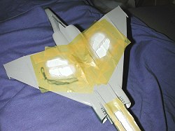 spraying directly on to bare plastic or whatever had been oversprayed. The really nice thing about Alclad is that after just a few hours you can mask over it with no problems at all. As usual with things like this, I used up a lot of masking tape. Now it may well be that painting this area before doing the rest of the camo might be the wisest way of doing things, but I've always done it in this order so decided to continue to do so.
