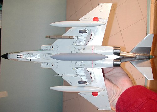 kit, I think they are still too far out. I then glued on the jamming pod. As a note I find it odd that no data or stencil markings are provided for the pod as I'm sure it was just as festooned with them as the rest of the aircraft. I also find it odd that there were none of the outer wing pylons or drop tanks. I've the sneaking suspicion that Hasegawa forgot to put them on the sheet or just ran out of room for them.