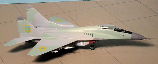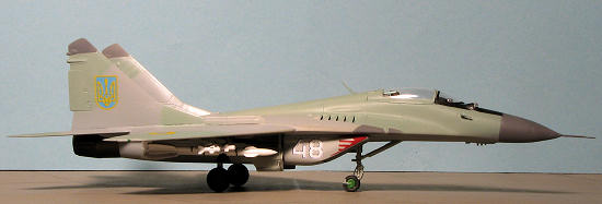 This kit comes on three sprues, one of them holding a two-piece canopy. The other have nicely engraved detailing, though not quite as crisp as what one finds on the Fujimi or Hasegawa MiG-29 kit. I also suspect that this kit is more accurate than those two, for the Japanese companies were in a rush to get theirs on the shelves and were unable to make accurate measurements of the real aircraft. The date on the box side is 1994.