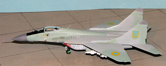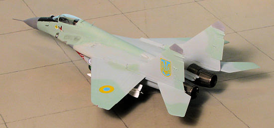 Once the markings were on, the usual coat of clear semi matte was applied. Then the wheels were glued in place as well as the exhaust, various nose sensors, and the missiles. I used the R-27s from the ICM kit as I'd already built them up and hadn't used them, using the drop tanks instead. The last item to add was the IR seeker clear bit. Fit here was poor even after some trimming of the mounting area (tried to trim the seeker itself but it is really hard to hold). It was mounted with clear cement. Usual touch up painting, masking removed from the clear bits and I was done.