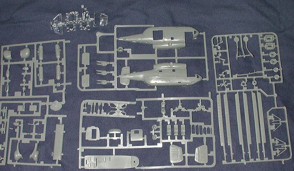 Back in the early 1980s, MPC imported nearly the entire Airfix line, repackaging the kits in MPC boxes and putting in their own decals and instructions. In all respects, the plastic is exactly the same as what comes in Airfix boxes. The Hormone is one of the better Airfix kits. No rivets or moving control surfaces for this one. Panel lines are very nicely done and of the raised variety. A full cockpit and something of a cabin are provided. To most helo kit makers surprise, they will find both the cyclic and collective in this one, though no rudder pedals. There are three generic seats with three equally generic crew members. The instrument panel has some raised detail, but it isn't very accurate! Clear pieces seem to have the required sink areas in the middle of the smaller pieces, something that almost seems an Airfix trait!