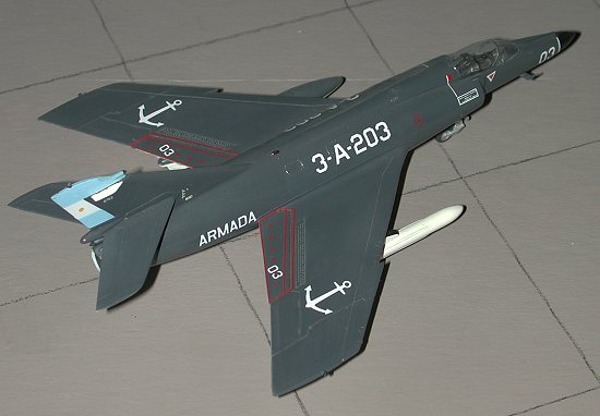 I had determined to do this aircraft as an Argentine navyversion. This was helped by Microscale's releasing of a set of decals for theArgentine side of the Falklands war. You must remember that this was early 1985when I built this kit and the war was still pretty fresh in people's minds. Itwas about this time that some trustworthy books on the subject were appearingthat were devoid of the usual propaganda that accompanies stuff publisheddirectly after an event.