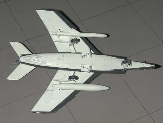 Once the painting and decaling was done, themissiles, drop tanks, landing gear, doors and other fiddly bits were added. Thenose mounted pitot tubes are an especially fiddly attachment, having only ashallow depression to fit into. These have been knocked off a bunch of timesover the years.