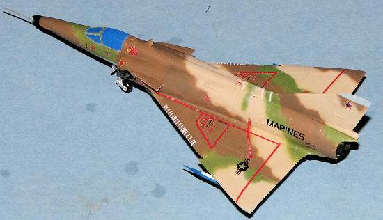 I wanted to build this kit to try out a set of Starfighter Decals. I chose sheet 144-100 which has F-21As for both USN, USMC and the civilian contractor, ATAC. I chose the USMC one from VMFT-401 and one in the desert camouflage scheme. This required standard old style Israeli camouflage. I used Model Master enamels and mySkybow AB-100 detail airbrush. Paint was water thin and air pressure down around 7 psi. When painting like this, it is a good ideal to be painting onto a matte surface to help prevent