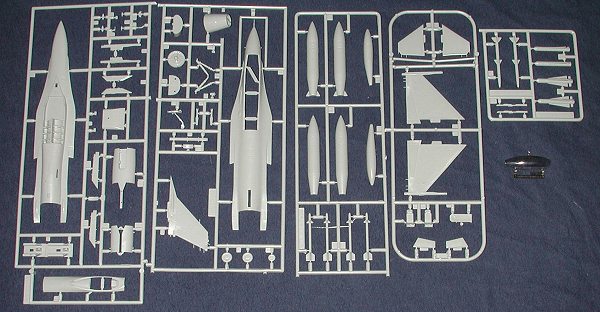 The rest of the Fujimi kit is pretty normal for what was produced about the same time that Hasegawa's kit came out. It is a 'multi-mode' kit in that the basic airframe can accommodate both the single and twin-seat arrangement as well as any upgrades (like to an ADF or C/D model). The detail level is about the same as with the Hasegawa kit, though not quite as crisply done. As with the Hase kit, the wings are single piece with the holes already drilled for pylons, so if you are not going to use some of them you'll need to break out the filler. You might also want to look into new missiles. As I mentioned before you need some Sparrows and while you are at it, a new set of Sidewinders would help as the kit ones are less than optimal. Put the Mavericks in the spares box.