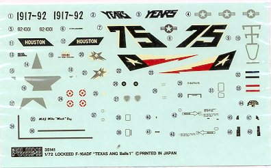Decals are for one 'Lockheed' F-16A ADF attached to the 111 FS, Texas ANG. It