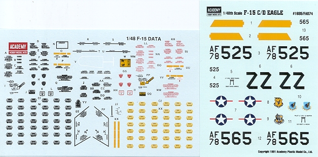 Instructions are quite good, providing easy to read construction steps and giving good color info, including FS 595 references where needed. Decals are for two planes from the 12th TFS/18th TFW based at Kadena, Okinawa and these are in the older, full color insignia. A full stencil suite is provided. The decals look like they will work well, but I'd be willing to bet that most modelers will go for aftermarket on this one.