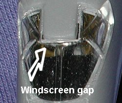 color anyway. As you can see from the above images, this is not a filler free kit! At this juncture, I glued in the cockpit glass. This part is a loose fit to say the least. It fits well enough, but the upper section is actually a bit smaller than the plastic to which it joins so there is a rather substantial gap. Fixing it will take some care with the filler, but it should be possible to fill it without too much damage to the surrounding windscreen. As I had surmised, not much of the interior can actually be seen once the windscreen is in place so no need for a lot of work in the cockpit!