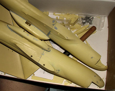 I still have six days in which to assemble and attach the wings, engines, gear, gear doors, and tailplanes. I also have to do something about painting the nose and anti-glare panel and install the engine faces at the proper depth. Decals need to be done as well. It will be close.