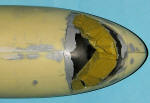 First thing I did was to mask off and paint the nose radome matte black. Then, looking at photos, I discovered that an area I left unpainted for the nose anti-glare panel needed to be left white as the 141 did not have one of these. After the paint dried on the nose, I masked it off and the grey below it to apply a couple of coats of white.
