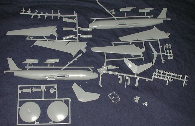 Several readers have commented on this kit and here is some info as to its true background: "Essentially the kit is a 707-100. Mods have been done to the mold over time, but it's still what it is. The fuselage is not right for a KC-135, a separate fuse was made for that. The words, "KC-135" or "Passenger 707" are visible inside the fuse to distinguish one from the other."
