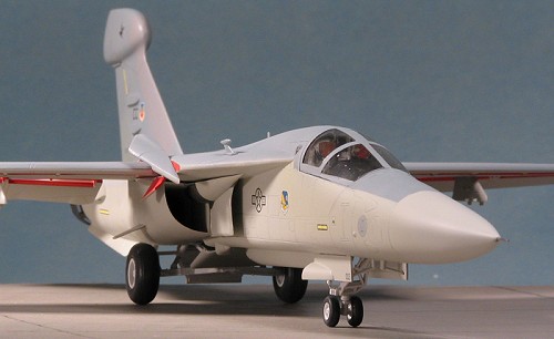 For this model, I decided to use a scheme at the end of their operational life. In this case, it wasCutting Edge 72-048, which I had picked up with a bunch of other sheets at a swap meet. I chose the CO's bird with the nice nose art on it. I dropped a few of the common markings decals into the water while I took a good look at the rest of the sheet. To my horror, all of them were shown with hard demarcation lines between the upper and lower colors. Mine was soft. There is also a GPS antenna on the nose that my kit doesn't have. Well, nothing to do about the decals except to put them on. Once they were dry, I gently masked the nose again and did the light grey in a hard line as shown on the sheet.