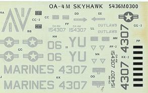 Instructions are typical of Monogram kits and quite good. Paint colors are given as both generic and, where applicable, by FS 595 numbers. The overall scheme itself is the Tactical Paint Scheme of FS 36320, 36375, and 36495. Decals are provided for just one aircraft from H&MS-11 from MCAS Yuma, AZ. The decals themselves are typical of many Monogram kits in that they are thick and glossy. However, they do work and to my knowledge there are no aftermarket options for the OA-4M.