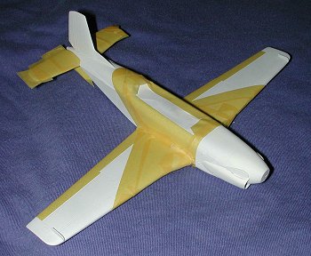 panels and wing walk areas. In fact, as you can see from the photo at the head of the article, there are a few more parts to do. This includes the leading edges of all the flight surfaces and the engine intakes. This meant more laborious masking (see image to the right). I didn't do the wing walk areas as I felt these might be better done with black stripe decals than paint. As usual, two hours of masking was followed by two minutes of painting. The results can be seen to the left.