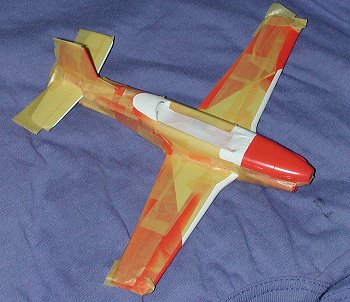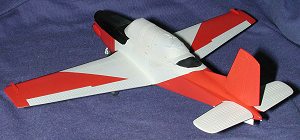 With the interior in place, the forward instrument panel was glued in and the fuselage halves were cemented together. I did it in stages to make sure that the fit was good and clamped each stage. Thanks to using a 'hot' glue and the relatively soft plastic, the fuselage was firmly glued solid. I did need some filler, especially on the bottom, but nothing out of the ordinary. Then the wings were joined to the fuselage. It is a butt join, but again, hot glue and soft plastic makes for a good combination. Be very careful to get things properly aligned. With the wings in place, the fin and horizontal stabilizers were glued on. I had to be very careful when trimming the mating surfaces to get the small stubs on the stabs to the proper size. Try to get this right the first time and not use any filler on the stabs. These parts are quite obviously not faired in when one looks at photos of the plane. In fact, it is almost as if there is a rubber seal between them and the fuselage.