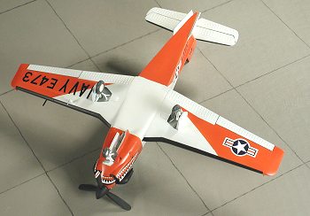 The final bits before hitting the paint shop were the rear stability strakes and the wing tip fences. During all this, I also assembled the prop. One thing you need to be aware of is that when the plane is at rest on the ramp, the prop is feathered. The instructions don't point this out. You also should not install the small VOR antennas on the fin. In-service planes do not use this type of antenna for this. None of my photos of USN T-34Cs show this feature.