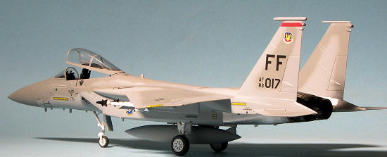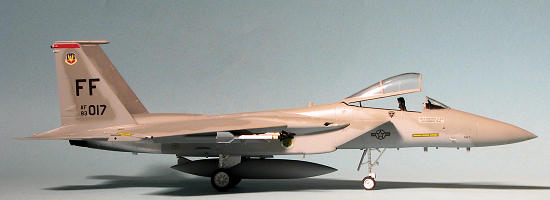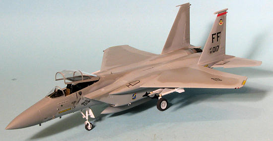 Hasegawa has issued several F-15 kits over the years. The first one was a prototype aircraft with the squared wing tips. It was quite basic with raised panel lines and minimal detail. However, that was expected from a kit in the early 1970s. This kit was later modified with the cut back wing tips, larger speed brake and proper fins with the right sized anti-flutter weights on the tips. In