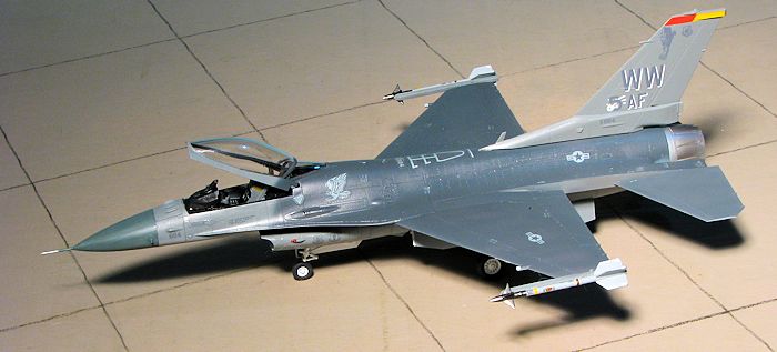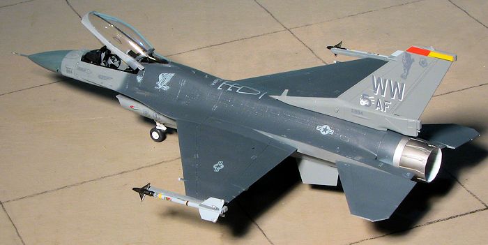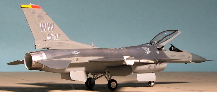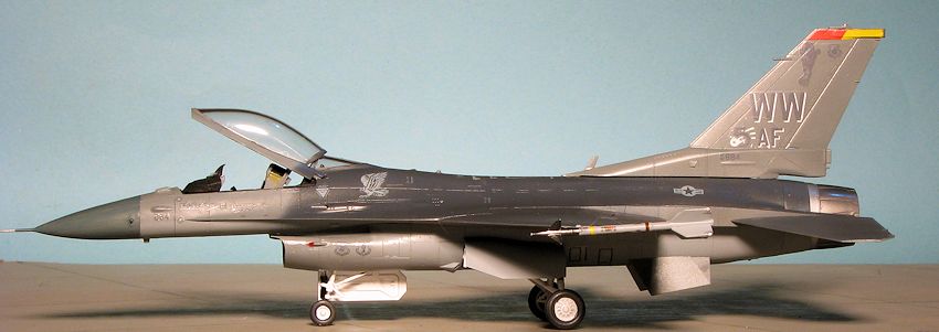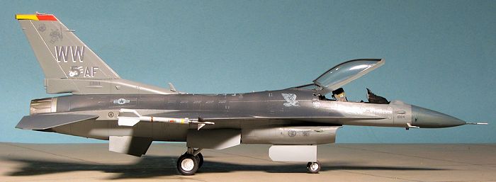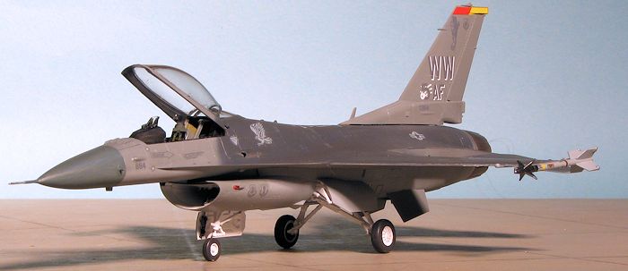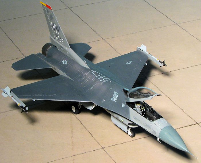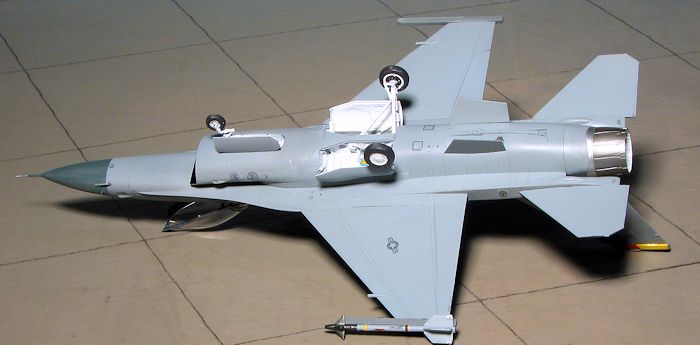 The canopy is designed to be posed open or closed. One needs to drill out the tip of the radome for the pitot. For weapons, one either has AIM-120s or Sidewiders.