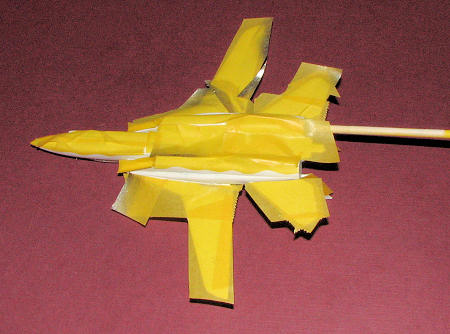I then painted the inside of the canopy a blue shade, masked it off and glued it in place. A hole was drilled into one of the exhaust attachment areas as a place to insert a stick to ease painting and it was off to the paint shop.