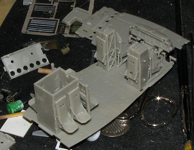 I eventually got all the bits attached to the interior. Note that you'll have to open up the right hand cyclic attachment hole as it is flashed over. Also be careful when attaching the item on the left side of the center console as the instructions would have you fit it into one of the holes f