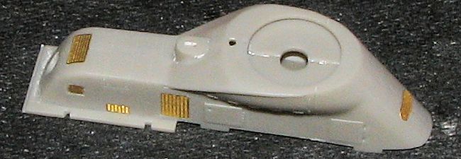 notice the little piece near the back (left), there should be an equal opening on the other side, but in this case it was completely sealed over. As these p.e. areas are supposed to be recessed, rather than do all that work, I simply attached the piece over the filled in area. I also found that some bits did not want to fit all the way into the recess provided.