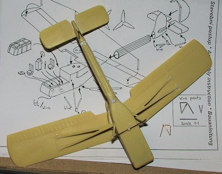 ttached to the underside of the two props. The landing gear and wing struts are flat on the bottom and will need to be gently sanded to give a proper airfoil shape. The upper wing engine pod has the exhaust mis-drilled as they are not in a straight line as shown in the box art and instructions. This will mean filling them and re-drilling them. Not sure how this managed to sneak past quality assurance. A forward skid is also poorly molded and will need replaced with wire. Wire is needed for several of the smaller supports and Kora provides a 1/1 drawing so you can make these bits.