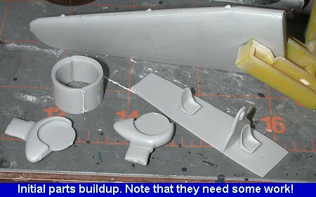 At this time, I also glued the wheel pants together as well asthe engine cowling halves. The interior bits were also glued together and allthese were set aside to dry before the next step. Once dry, the various seamswere filled. And all the bits that came in halves had rather large seams.