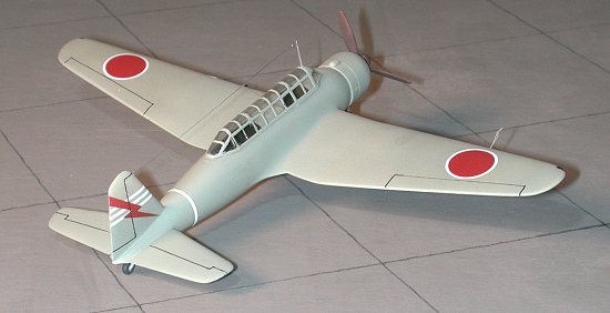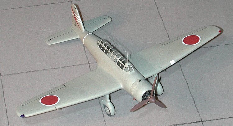 Taking the lazy way out, I painted the plane in overall JAAFgreen-grey. Actually, most of these planes were painted in this color. It isn'tlike there was really any air opposition to them so camouflage wasn't required.I used an Aeromaster Acrylic for this color. When it was dry, I clear glossedthe areas that would take decals. This was basically the wing ends and the tailof the plane. No fuselage Hinomarus were used on JAAF planes at this time.