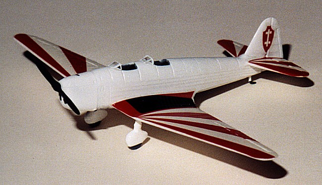 Fitting the engine was a major problem was the facings were not square. Some time was spent with a file and sandpaper to cure this. I did have to use putty on the wings and engine. Once the airframe was complete, the spatted wheels were attached as was the tail skid. The aircraft was painted gloss white overall using Testors Model Master enamel. While that was drying the propeller was painted flat black.