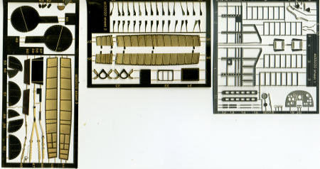 Three complete photo etch sheets are supplied. These are for all the interior framing, insides of gear doors and wells, the flap wells and the flaps themselves. This includes quite a few flap braces. Other bits like the instrument panel and the flat exhaust section are also on these sheets.
