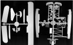 This is one of those kits that seems to find a home in a number of different boxes. Two white sprues with several parts having considerable flash greets one as the flimsy cardboard box is opened. Out falls a single sheet of dry transfers, a half sheet of paper with 'instructions' and that is about it.