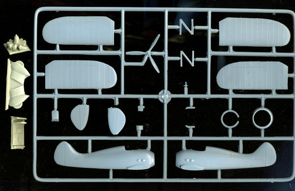 Resin is used for the engine and the main cockpit tub parts. This includes the control stick which is butt fit to the floor of the cockpit. The seat is injected plastic. The spats with wheels are also in resin and quite well done. The engine is a fine mold, but hampered by large resin blobs in between some of the cylinders. A real mess to cut out and of course, you'll remove all the cylinder fin detail when grinding out these chunks. It seems that quality assurance was on a coffee break for this piece. No self respecting company would even allow this to continue on and I can see where people have been disappointed by this sort of thing on their other kits.